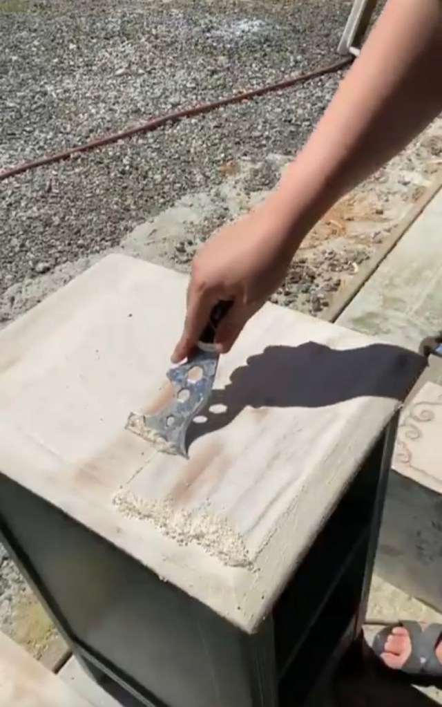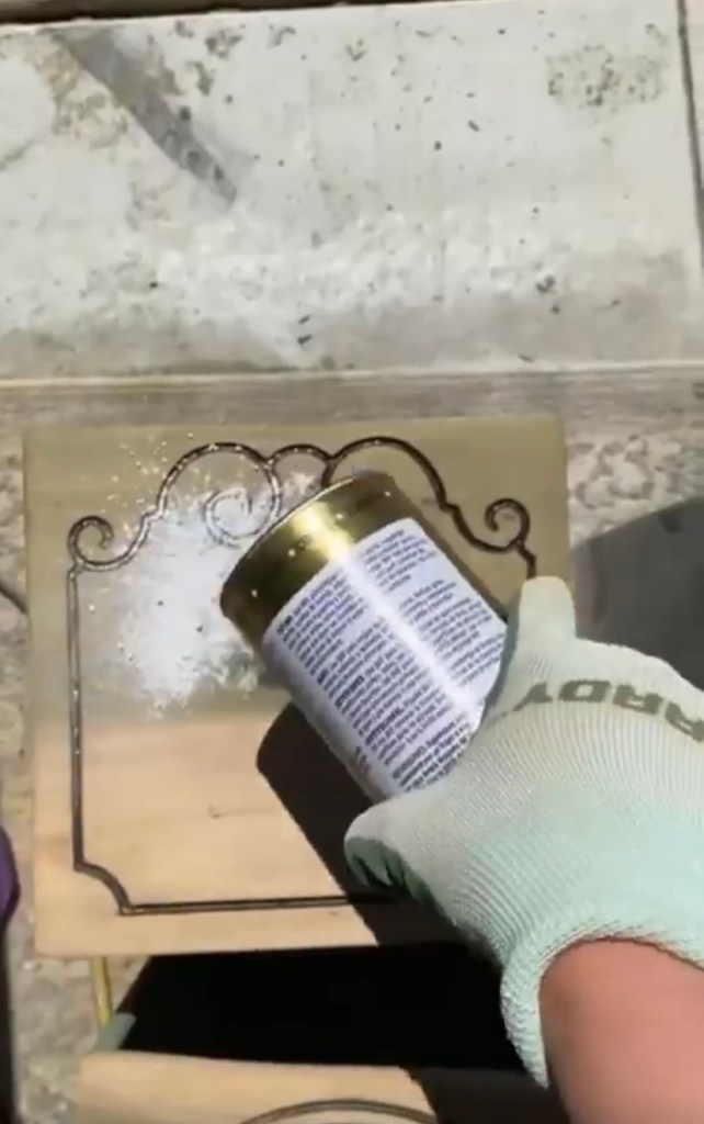 Do all your sanding beforehand and make sure it’s a clean surface. Sprinkle Bar Keeper’s Friend on the green areas.