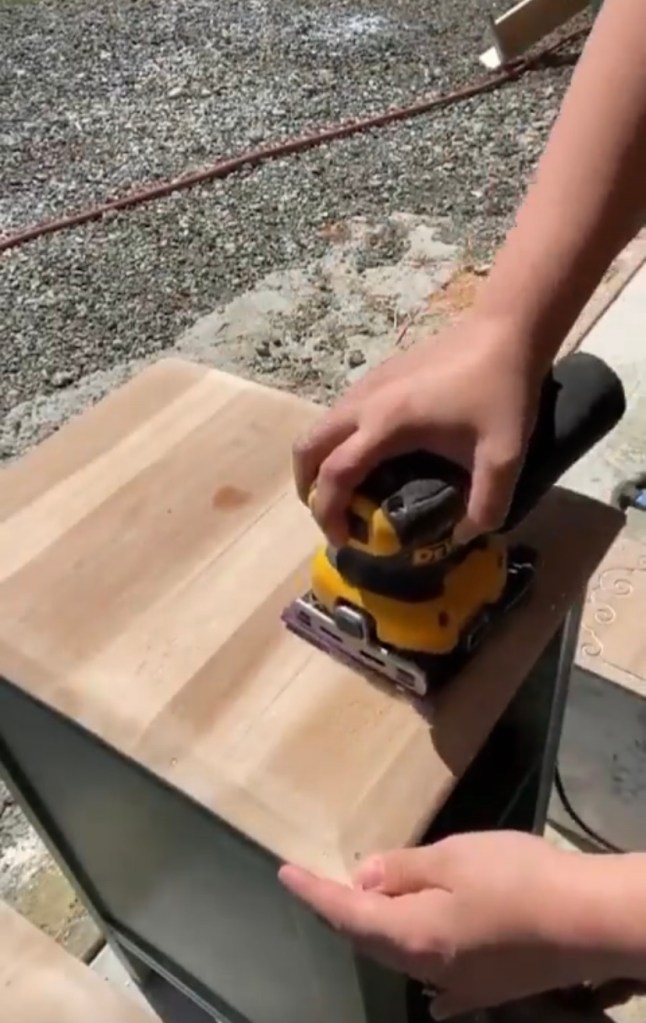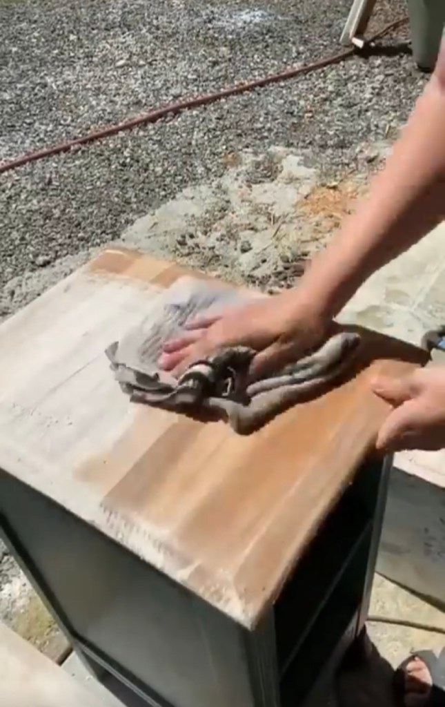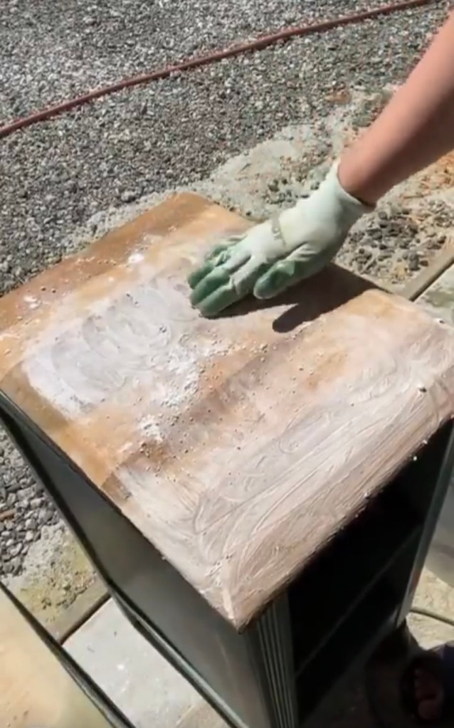 Softly sand with 220 grit. (The chemical reaction that neutralizes the green appearance doesn’t go very deep. If you sand too much and start to see any spots of green, just repeat this process!