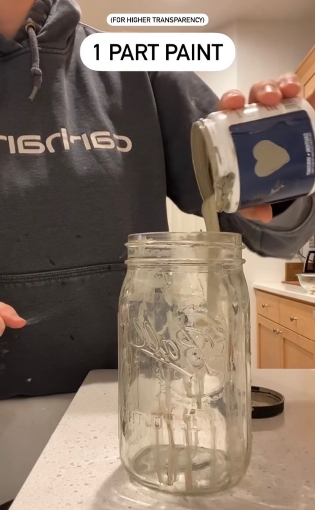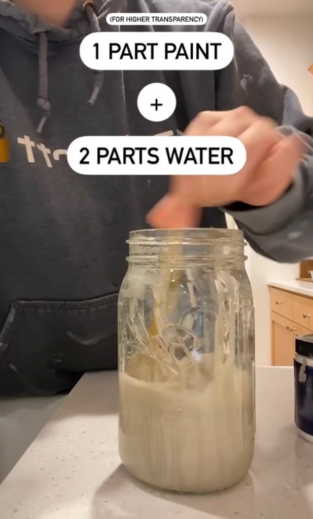 Add two parts of water to achieve a higher transparency with the paint wash. Usually, you’ll see paint washes be a 1:1 ratio, but you’d need to go back and wipe away after applying. Doing a 1:2 or even a 1:3 paint wash allows you to apply and not need to wipe away.