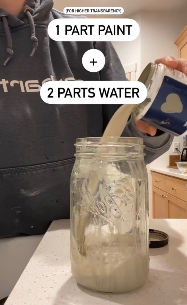 Stir to blend the paint and water so that you can easily see the consistency and color.