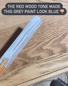You see the red-toned wood pulled the blue tones out of the grey paint I was going to use. And I didn’t want a blue hutch… I wanted a grey one!