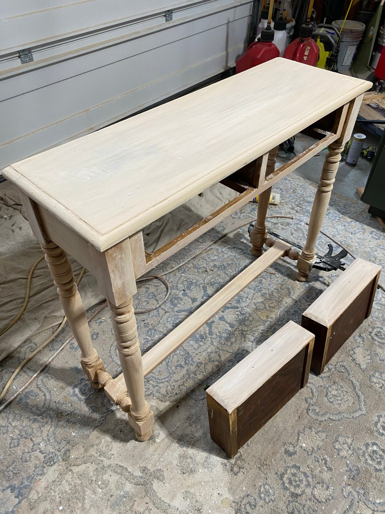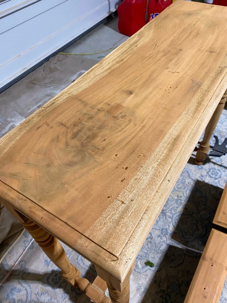 In the past, I’ve used diluted clothing bleach to lighten wood but there’s a few factors in that technique I didn’t like. First, if it’s not a warm day to let clothing bleach on wood bask in the sun or a hair drier to use, it takes forever. Second, I’ve noticed that it makes the wood very dry after using clothing bleach. Third, it’s messy and smells!