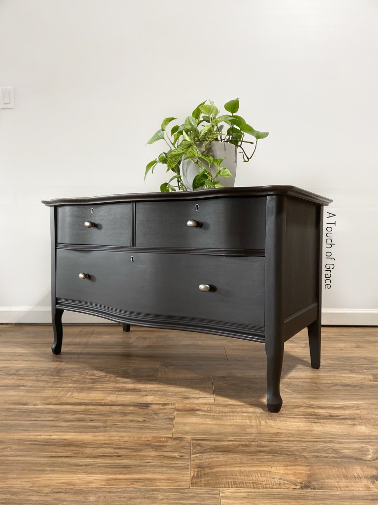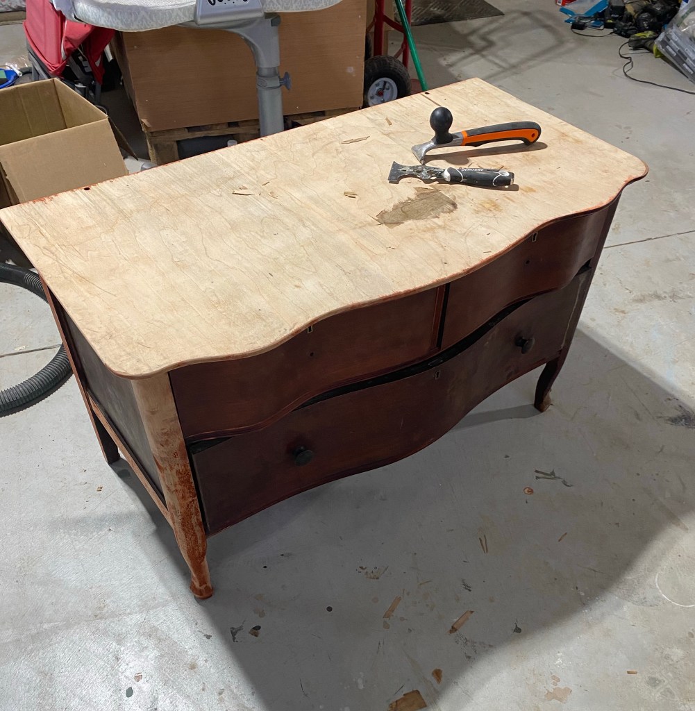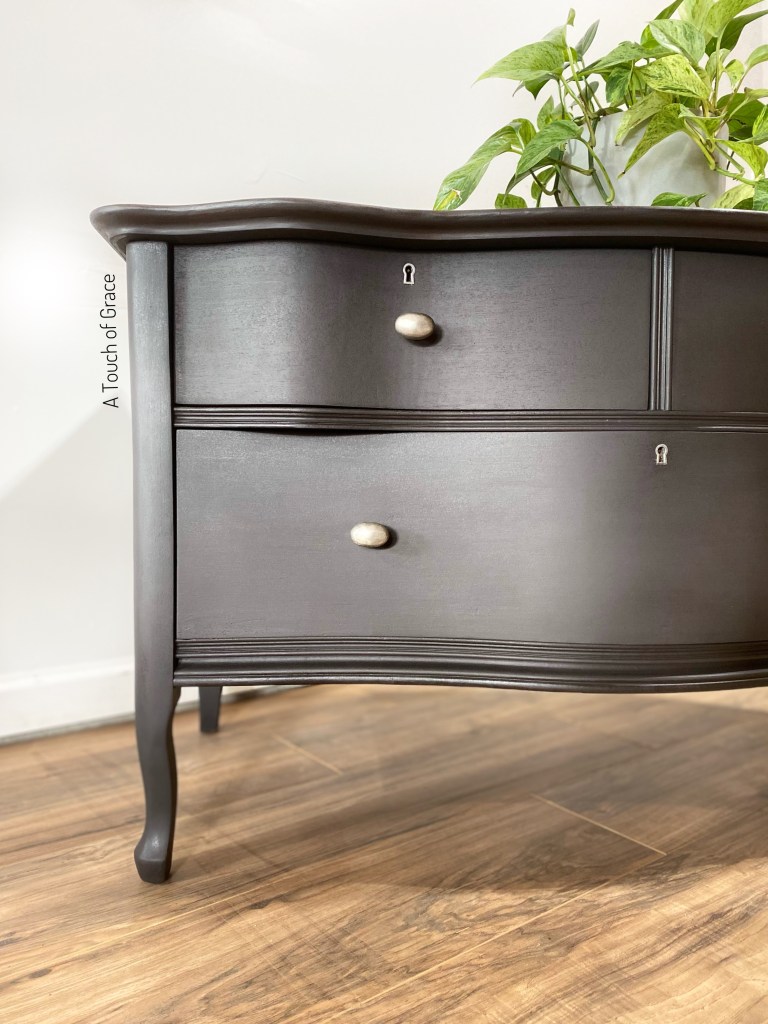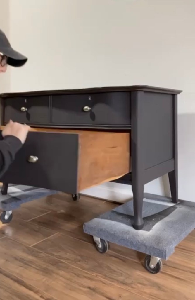 Often times, especially with the older pieces, drawers will have a tough time closing. To help it close correctly and not make more dents, I used this tip!
