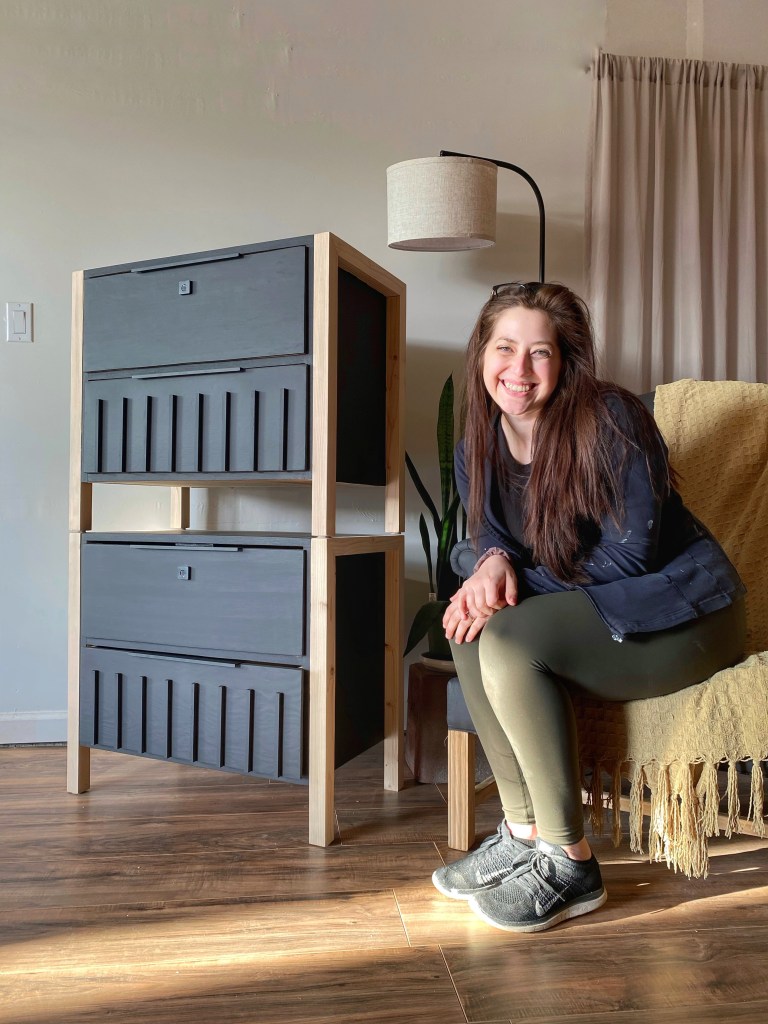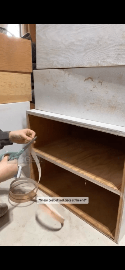 It used to take me ages to wood fill these edges before painting it so it’d appear like a solid, smooth surface. Using this product has saved me so much time. And not only can you paint it, there are different wood type options AND it’s stainable! Here I’m using Red Oak.